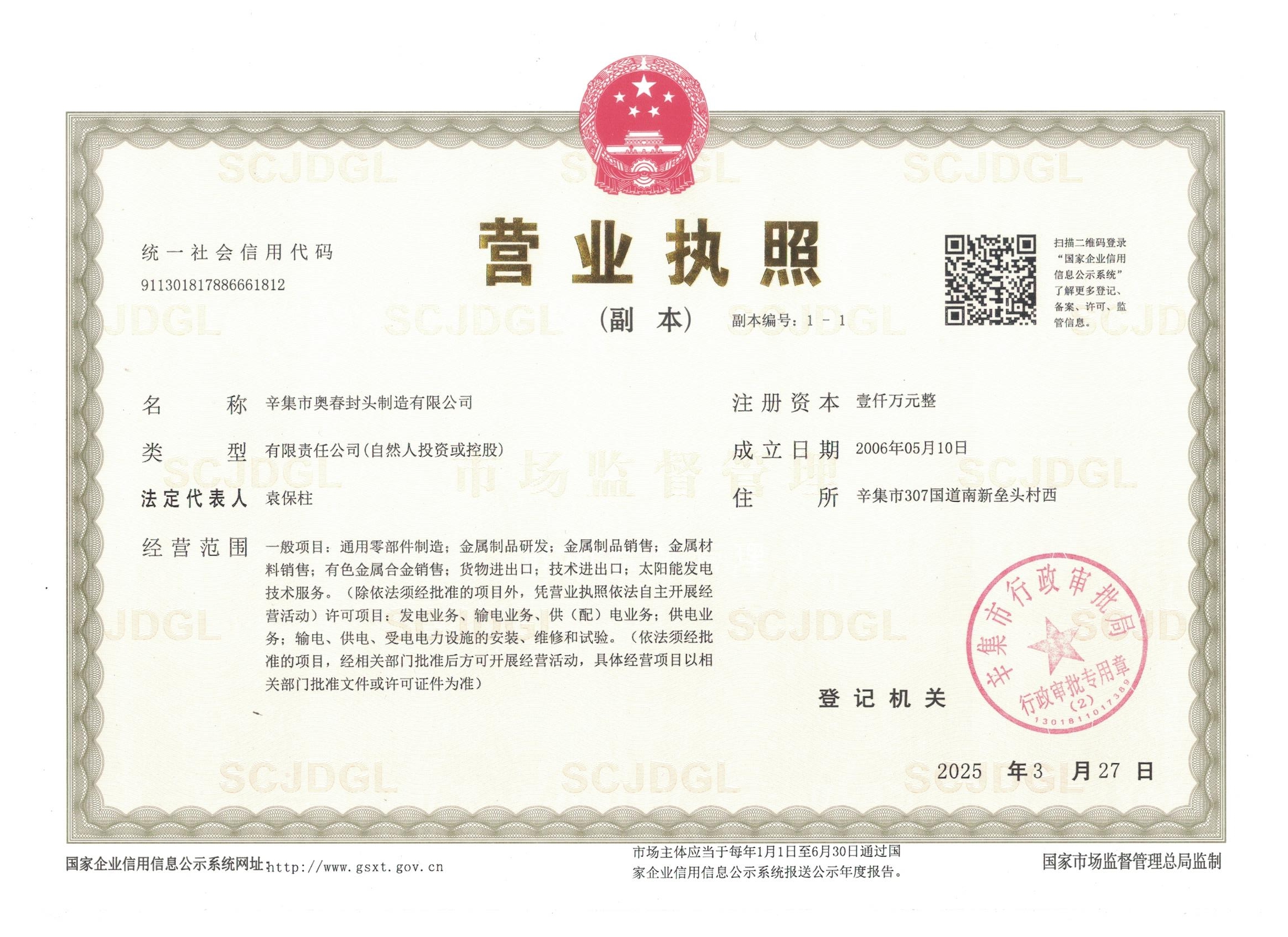 辛集市奧春封頭制造有限公司成立于2006年,坐落于河北省辛集市新壘頭工業(yè)區(qū),地理位置優(yōu)越,毗鄰307國(guó)道,北接黃石高速,交通便捷。公司占地面積35000平方米,建筑面積28000平方米,總投資達(dá)2億元人民幣,是一家專業(yè)制造封頭的廠家。2006年公司成功取得國(guó)家A3封頭制造許可證,標(biāo)志著其產(chǎn)品質(zhì)量和技術(shù)水平得到了國(guó)家權(quán)威機(jī)構(gòu)的認(rèn)可。